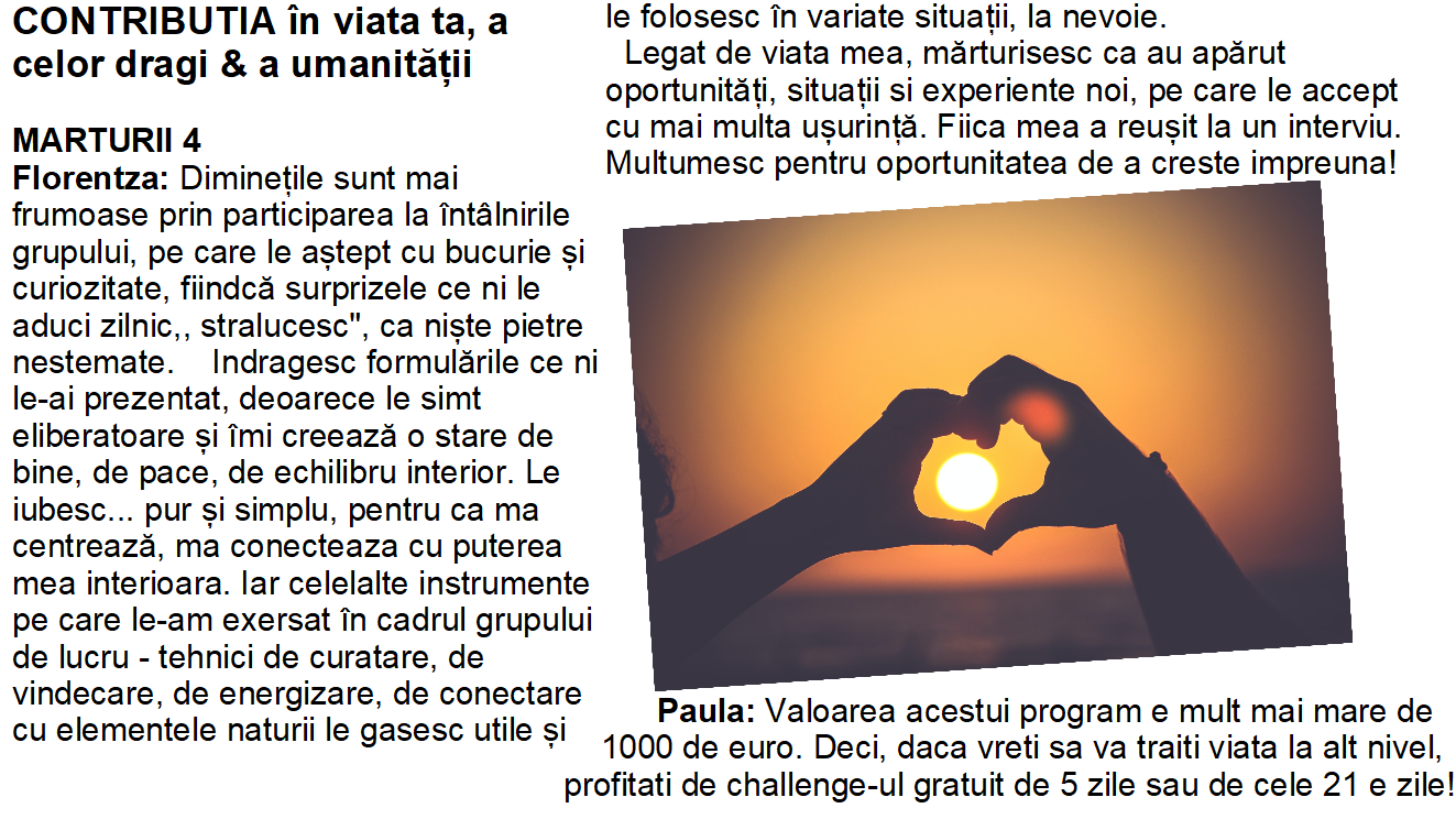 Contribuția în viața ta, celorlați, umanității – 21 zile